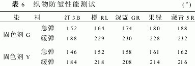 (3)固色劑G處理的染色織物,兼有樹(shù)脂整理效果,彈性有所提高,防皺性增強(qiáng)。