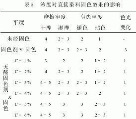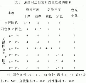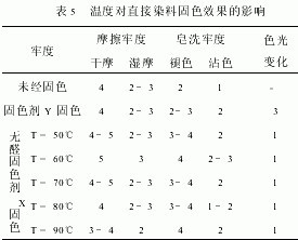 【集萃網(wǎng)觀察】1 前言 直接染料、活性染料、硫化染料在棉布染色中占有很大的比重,但由于種種原因,牢度不夠理想,通常染后需經(jīng)固色處理。 目前固色劑的種類很多,常用的有:含金屬鹽類固色劑(如:硫酸銅、重鉻酸鉀等)、陽離子型固色劑(如:固色劑Y、固色劑M、固色劑B等)、反應性交聯(lián)固色劑(如:固色劑DE、固色劑P、固色劑EH等),其中固色劑Y應用較為廣泛,目前仍占有相當大的市場,它能顯著提高陰離子型染料的皂洗牢度,對色光影響較小,但固色后日曬牢度有所降低,更重要的是此類固色劑含游離甲醛。 從紡織品加工過程來看,紡織品上的甲醛主要來自于印染后的固色處理和后整理中的樹脂整理。目前,世界上一些發(fā)達國家,如:德國、日本等相繼通過和實施有關(guān)法規(guī),限制紡織品上的甲醛含量,規(guī)定內(nèi)衣上的甲醛含量必須控制在80ppm以內(nèi),外衣上的甲醛含量應限制在300ppm以內(nèi)。為此,有的廠家利用高溫焙烘法試圖去除甲醛,但效果不夠理想。所以,研制一種效果好、色變小、且不含甲醛的固色劑已成為當前印染助劑行業(yè)的迫切要求。針對這一問題,作者就開發(fā)研制的無醛固色劑X在棉用染料中的應用性能作以下探討。 2 小樣試驗及分析 2.1 試驗儀器、材料及藥品 2.1.1 試驗儀器和材料 SW-12型A皂洗牢度儀;Y571B型摩擦牢度儀;GB250-1995染色牢度褪色樣卡;GB251-1995染色牢度沾色樣卡;2020純棉染色平布(硫化染料、直接染料、活性染料) 2.1.2 實驗藥品 工業(yè)用:固色劑Y;無醛固色劑X;中性皂片;瘜W純:冰醋酸、純堿、燒堿。 2.2 試驗方法和條件 皂洗牢度按GB3921-83耐洗色牢度測試;摩擦牢度按GB3920-83耐摩擦色牢度測試;褪色牢度按GB250-1995變色用灰色樣卡評定;沾色牢度按GB251-1995沾色用灰色樣卡評定;摩擦牢度按GB251-1995沾色用灰色樣卡評定。 2.3 試驗結(jié)果及分析 無醛固色劑X系陰離子型表面活性劑,其外觀呈無色透明液狀,pH值為6,它屬于反應性固色劑,經(jīng)固色處理后,可在染色織物表面形成一層透明薄膜,同時可與染料或纖維上的極性基因反應,形成交聯(lián),從而提高染色牢度。對無醛固色劑X我們作了以下試驗:2.3.1 pH值對固色效果的影響固色pH值一方面影響固色劑的溶解,另一方面對染色織物的色牢度有一定的影響,我們選擇了弱酸性至弱堿性條件進行了固色試驗,試驗結(jié)果見表1、表2、表3。 由上述試驗結(jié)果得知,無醛固色劑X在pH=7時固色效果最好,當pH值低于中性時,牢度提高不明顯,尤其是硫化染料和直接染料。當pH值高于中性時,一般色光都發(fā)生不同程度的變化。所以用無醛固色劑X固色,pH值宜控制在中性條件。 2.3.2 溫度對固色效果的影響 通常情況下,提高固色溫度對反應性固色劑是無醛固色劑X固色無醛固色劑有利的。但對于皂洗牢度較差的染料,在固色的同時染料的解吸也增加,所以不同的染料,固色溫度的影響不同。我們選擇了50~90℃的條件進行了試驗,試驗結(jié)果見表4、表5、表6。 試驗結(jié)果表明:硫化染料固色溫度控制在70℃最佳,直接染料固色溫度控制在60℃為宜,而活性染料固色溫度控制在90℃相對比較理想。這是因為各類染料在織物上的存在狀態(tài)不同,硫化染料以不溶性色淀的形式存在,直接染料以氫鍵和范德華力與纖維結(jié)合,而活性染料則以共價鍵力與纖維結(jié)合?梢,提高固色溫度對直接染料皂洗牢度影響較大,溫度太高,反而導致染料大量解吸。2.3.3 濃度對固色效果的影響我們選擇了1~6%的濃度范圍進行了試驗試驗結(jié)果見表7、表8、表9。 由上述試驗結(jié)果得知,對于硫化染料和活性染料來說,當無醛固色劑X用量達到3%時,各項牢度均較理想,繼續(xù)增加用量,牢度提高不顯著,反而導致使色光變化明顯。對于直接染料來說,在3%用量的基礎(chǔ)上適當提高濃度,對各項牢度的提高是有幫助的。 3 結(jié)論 經(jīng)過對無醛固色劑X在棉用染料上固色工藝的探討,得到下列結(jié)論: 3.1 用無醛固色劑X固色,摩擦牢度和皂洗牢度能達到固色劑Y的水平,有些甚至超過固色劑Y,所以,用固色劑X代替固色劑Y是可行的。 3.2 無醛固色劑X用于不同棉用染料固色應采用不同的工藝條件。硫化料:pH=7,T=70℃,C=3%(o.w.f.)直接染料:pH=7,T=60℃,C=5~6%(o.w.f.)活性染料:pH=7,T=90℃,C=3%(o.w.f.) 3.3 雖然無醛固色劑X對提高棉用染料的摩擦牢度和皂洗牢度有一定的貢獻,但仍有某些牢度指標提高不夠顯著,如:硫化染料的濕摩擦牢度等(注:對于無醛固色劑X的剝色效果及對日曬牢度的影響本次未作系統(tǒng)試驗)。并且無醛固色劑X對硫化染料、活性染料的色光有一定的影響,所以還有待于今后進一步改進。 參考文獻 [1]印染助劑第15卷第2期P.19-22 [2]印染助劑第14卷第5期P.18-19 [3]染整科技1997年第2期P.39-51 來源: 印染在線 作者:常州工業(yè)學!∽T淑賢 蔡蘇英