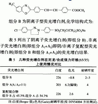 二苯乙烯基苯類熒光增白劑屬于非離子型,它和一些陰離子型的熒光增白劑復(fù)配使用,加和增效作用明顯.