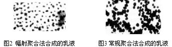 我們按相同配方,分別用輻射聚合法和常規(guī)乳液聚合法合成出的產(chǎn)品進(jìn)行了性能比較,結(jié)果見表2。