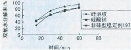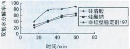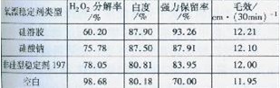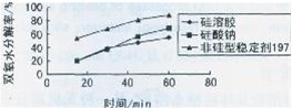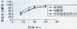3.2在強堿介質(zhì)中,與其它氧漂穩(wěn)定劑相比,硅溶膠仍有較好的抑制雙氧水分解的能力。