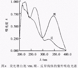 由圖4可見,經(jīng)光照以后,熒光增白劑VBL由強熒光的反式變成了無熒光的順式.