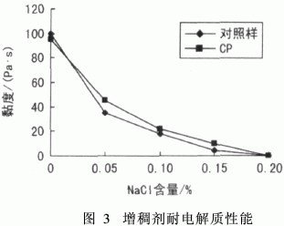 測(cè)定合成增稠劑CP的增稠性能、流變性、耐電解質(zhì)性能及抱水性。