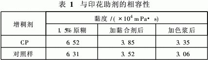 (1)合成增稠劑CP增稠能力強(qiáng),具有良好的抱水性和耐電解質(zhì)性能,與印花黏合劑、涂料及印花助劑相容性好,是制備涂料印花色漿的高效增稠劑。