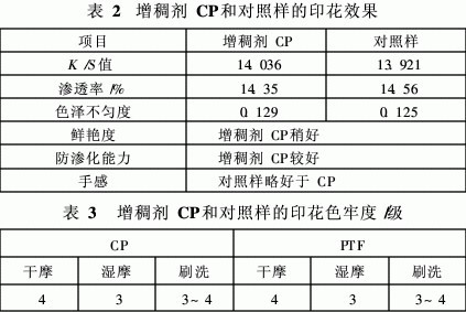 2. 5. 2 印花效果 比較表2和表3,增稠劑CP印花產(chǎn)品的各項(xiàng)印花指標(biāo)均與對(duì)照樣接近。 3 結(jié)論