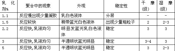 表2乳化劑用量對聚合穩(wěn)定性的影響