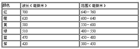 【集萃網(wǎng)觀察】光除了具有波動(dòng)性外,還有粒子性,即所謂量子特性。無論可見光或不可見光,都好像是一種所謂“光子”的極微小的發(fā)光微粒的流動(dòng)。如果從光的波動(dòng)觀點(diǎn)看,光有波的傳播方向;如果從光的量子觀點(diǎn)看,則光有著發(fā)光微!庾拥倪\(yùn)動(dòng)方向。 根據(jù)量子理論,光線的不同色彩是由于光子具有不同的能量而引起的。每一個(gè)光子所負(fù)荷的最小能量,就叫做“能量子”(光量子理論的名稱由此而來),它隨振動(dòng)時(shí)的光的波長(zhǎng)而不同。光量子的能是和波長(zhǎng)成反比的,也就是說光的波長(zhǎng)愈長(zhǎng),則從量子理論來看,這種光的光子所具有的能量就愈少。例如波長(zhǎng)為2000埃的紫外線,它是由一種光子流所組成的,這種光子流中每一個(gè)光子所負(fù)荷的能量,比波長(zhǎng)為10,000埃的紅外線的光子所具有的能量大五倍。 光波的波長(zhǎng)(波峰與波峰之間的距離謂之波長(zhǎng))通常是用萬分之一,千萬分之一,甚至是用億分之一厘米去量度的。萬分之一厘米叫做微米(μ),國(guó)際制單位記為μm,千萬分之一厘米叫做毫微米(mμ),國(guó)際制單位記為nm,最小的單位億分之一厘米叫做埃(A°)。如果用埃來表示可見光線光譜中光波的波長(zhǎng),則最長(zhǎng)的光波(紅色光線)的波長(zhǎng)約是7,000埃,最短的光波(紫色光線)的波長(zhǎng)約是4000埃。 有關(guān)光波波長(zhǎng)量度單位的換算關(guān)系,可見下述: 1微米=10-6m=10-4cm=10-3mm 1毫微米=10-9m=10-7cm=10-6mm=10-3μm 1埃=10-10m=10-8cm=10-7mm=1/10nm,10A°=lnm (二)什么是顏色? 根據(jù)美國(guó)光學(xué)協(xié)會(huì)(OpticalSocietyofAmerica—OSA)的定義,顏色是除了空間和暫時(shí)不均勻性以外的光的特性。 顏色屬于心理物理學(xué)的范疇,是一種物理現(xiàn)象刺激的生理及心理感覺。顏色是在光照射下可以感覺到的東西。沒有光,顏色也就不存在了,所以,顏色是光對(duì)視覺的物理感覺作用,是光的一種特征。它是由各種不同波長(zhǎng)的光形成的。 顏色,也可以說是客觀存在的物體(發(fā)光體或非發(fā)光體)的一種光學(xué)特性,它以一定波長(zhǎng)或某種復(fù)合波長(zhǎng)的光射人人眼,刺激了人眼的視網(wǎng)膜而引起人的感覺。由于波長(zhǎng)不同,光能量也不同,所以對(duì)人眼視網(wǎng)膜產(chǎn)生的刺激也就不同,從而就形成了不同的顏色感覺。又由于同一波長(zhǎng)的光,其光量不同,能量也不同,產(chǎn)生刺激的程度也不同,從而就形成了同一種顏色就有深,淺(濃,淡)之分。 至此,光和顏色的關(guān)系,就有了一個(gè)基本概念。它們之間的關(guān)系,還可從太陽(yáng)光通過三棱鏡后分解成紅、橙、黃、綠、青、藍(lán)、紫等顏色光帶來說明(雨后天空出現(xiàn)彩虹也是這個(gè)道理)。 為什么白光通過三棱鏡后會(huì)分解成這樣的光譜呢?這是因?yàn)楣庠诓Aе袀鞑,比在空氣中要慢一些。各種顏色的光的波長(zhǎng)是不同的,波長(zhǎng)不同的光在三棱鏡中的折射率也是不同的,折射率不同,偏轉(zhuǎn)也就不同(如長(zhǎng)波長(zhǎng)的紅光偏轉(zhuǎn)得少,短波長(zhǎng)的紫光偏轉(zhuǎn)得多)。所以,如果通過三棱鏡的光線只有一種波長(zhǎng),那末,它就呈現(xiàn)一種顏色,如果通過三棱鏡的光線中含有各種波長(zhǎng),那末,它就會(huì)被分解成各種顏色。 各種波長(zhǎng)不同的可見光,用眼睛來區(qū)別時(shí)就是各種不同的顏色。眼睛不能直接辨別出白色光線中的七種顏色,通過三棱鏡把它們分解開來后,才使人們辨別清楚。 在透明的介質(zhì)中,各種色光折射率不同的現(xiàn)象稱為色散。一般講,波長(zhǎng)愈長(zhǎng),折射率就愈小。 利用色散現(xiàn)象,可以把一個(gè)光源的光分解成為光譜,從光譜就可以測(cè)定波長(zhǎng)。所以色散觀象不僅說明光有波動(dòng)性,而且可以用它來測(cè)定光波的波長(zhǎng)。 各種色光的近似波長(zhǎng)見下表: 光的干涉作用(例如肥皂泡呈現(xiàn)的色彩)和衍射作用(如光穿過光柵后就不再依直線前進(jìn),各種不同波長(zhǎng)的光就會(huì)向不同的方向衍射)均可使光起分解作用; 那么是不是只有分解作用等才能產(chǎn)生顏色呢了不是的。物體的顏色就不是由光的分解而產(chǎn)生的。而是物體對(duì)光進(jìn)行選擇性吸收和選擇性反射的結(jié)果。 所謂物體的顏色,就是指物體改變照射在其上的光的顏色的能力。 當(dāng)電磁波照射在物體上時(shí),就有可能發(fā)生三種情況,即透射、反射和吸收,或是三者之間的任何組合形式。一個(gè)物體在日光下呈現(xiàn)紅色,是因?yàn)樗樟丝梢姽庾V中主要的短波長(zhǎng)而給觀察者反射或透射了剩下的部分之故。吸收的光能一般則以熱的形式再發(fā)射出來。 來源: 中國(guó)UV網(wǎng)
