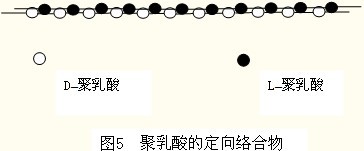 乳酸有兩個光學(xué)異構(gòu)體(對映體),分別稱為L-乳酸和D-乳酸(圖1)。用典型的發(fā)酵法可得到以L-乳酸為主(99.5%)的產(chǎn)物,D-乳酸雖不如L-乳酸普遍,但也可用發(fā)酵法制得。乳酸的環(huán)狀二聚物中間體稱為丙交酯,可能有D-,L-,和內(nèi)消旋-丙交酯三種結(jié)構(gòu)(圖2) 圖1 L-乳酸和D-乳酸 用乳酸單體制備聚乳酸主要有兩種途徑(圖3):①直接縮聚法,需用溶劑和高真空條件脫水;②溫和條件下脫水生成丙交酯中間體,由丙交酯開環(huán)聚合,不用溶劑 圖3 聚乳酸的制備途徑 途徑②制備可得到異構(gòu)體比例不同、分子量不同的系列聚合物,示意圖見圖4。 用L-比例高的聚合物可以制得結(jié)晶化合物,然而D-含量高的材料是無定型的。圖5所示是聚乳酸的定向絡(luò)合物,它是由高L-和高D-的聚合物混合熔融后得到的產(chǎn)物,熔點約為210℃,比單獨D-或L-的聚合物高25℃。正在研究將該技術(shù)用于纖維。 (2)聚乳酸纖維