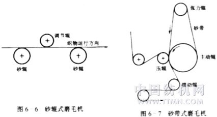 磨毛是由砂粒鋒利的尖角和刀刃,磨削織物的經(jīng)緯紗后產(chǎn)生絨毛