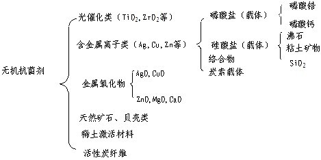 主要是利用銀、銅、鋅、鈦、汞、鉛等金屬及其離子的殺菌抑菌能力制得的抗菌劑。由于汞鉛等金屬及其化合物等毒性較強,不適合作為普通場合的抗菌劑使用,而銅類化合物往往帶有較深的顏色,也抑制了其作為抗菌劑的使用范圍。銀離子無毒,無色,是抑菌能力強的品種之一,非常適于制備抗菌劑,所以目前制備無機抗菌劑以陰離子及其化合物為多,鋅、鈦等化合物也有應(yīng)用。