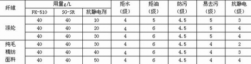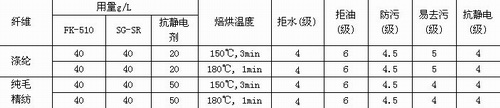防污易去污整理劑;拒水拒油整理劑FK-510;三防專(zhuān)用抗靜電整理劑(均為北京中紡化工有限公司的產(chǎn)品)