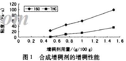 測試了該合成增稠劑的增稠性能、耐硬水性能、耐稀釋性能和抱水性能,以及電解質(zhì)和溫度對增稠劑的影響。