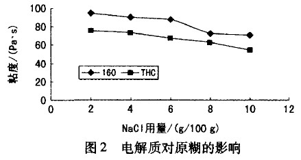 在原糊中加入不同用量的NaCl,測定其粘度,結(jié)果見圖2。
