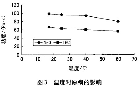 測試不同溫度下原糊的粘度,結(jié)果見圖3。