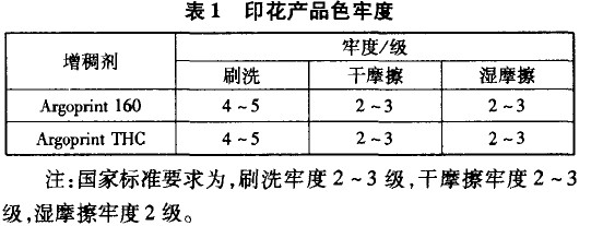 由表1可知,合成增稠劑Argoprint 160和Argo.print THC的各項牢度均達(dá)到國家標(biāo)準(zhǔn),特別是刷洗牢度非常好。
