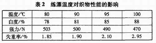 采用3#方進(jìn)行莫代爾/棉混紡毛巾織物精練漂白,探討了在不同練漂溫度下織物的性能。