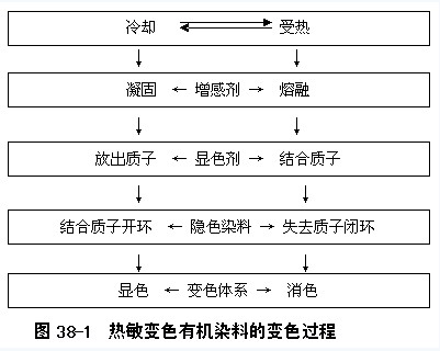 熱敏變色有機(jī)染料其變色為可逆的,其變色過程見圖38-1: